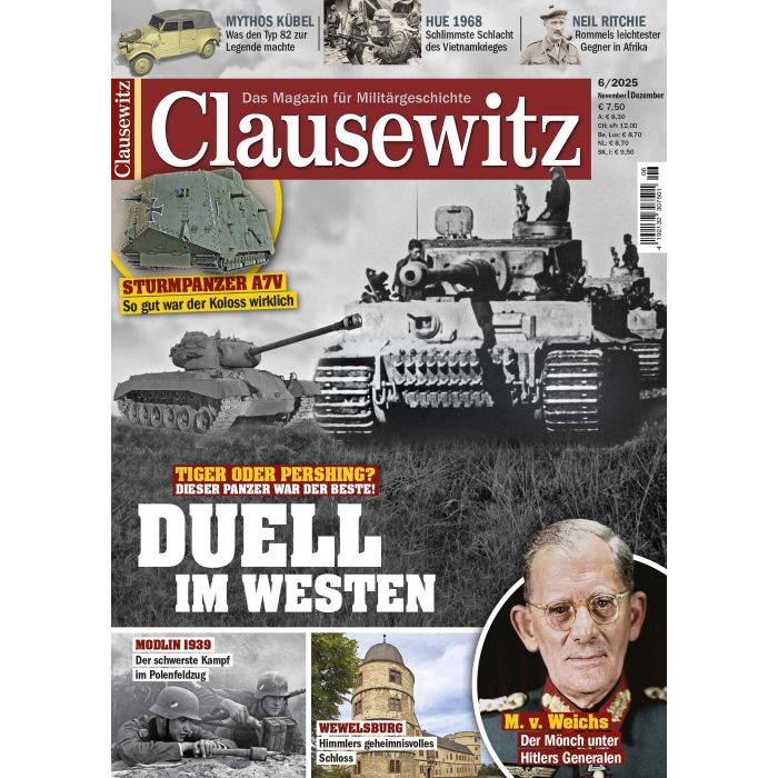 Entdecken Sie die Welt der Militärgeschichte mit Clausewitz – dem führenden Magazin für Militärhistorie! Jedes Heft ist aufwändig gestaltet und hochwertig illustriert, wobei namhafte Historiker über große Kriege, bedeutende Schlachten und wegweisende diplomatische Ereignisse berichten. Das Magazin befasst sich intensiv mit den Facetten militärhistorischer Persönlichkeiten und bietet informative Beiträge zur Militärtechnik.