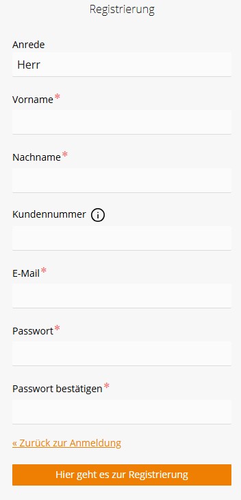 Falls Sie noch kein Konto haben, gehen Sie auf den Link unten "Hier geht es zur Registrierung". Im nächsten Schritt füllen Sie bitte dann ale Felder der Registrierungsmaske aus und klicken "Hier geht es zur Registrierung".