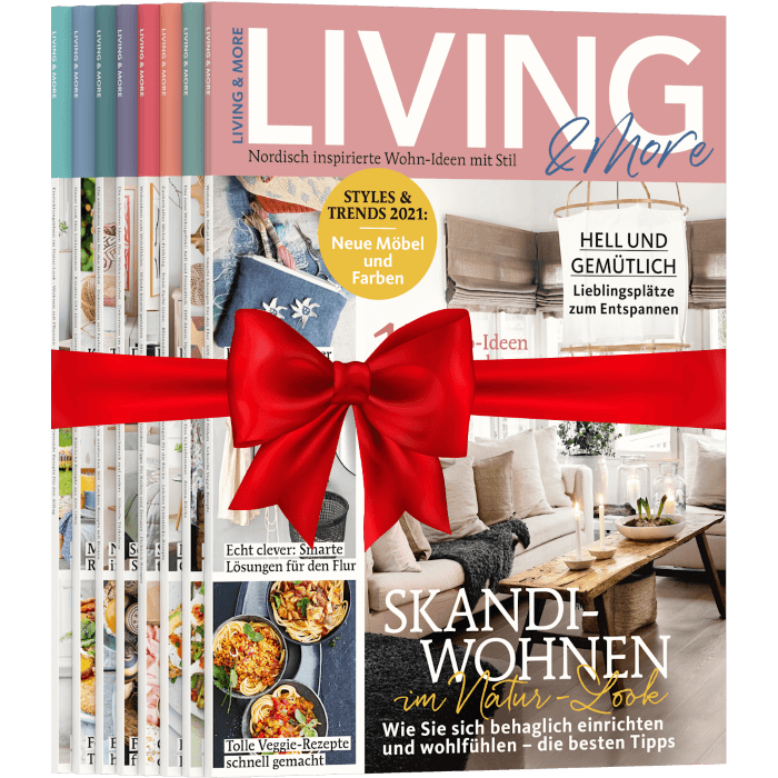 Mit einem Abonnement erhalten Sie 8 x im Jahr das Magazin Living & More schon vor Erscheinen der Ausgabe im Zeitschriftenhandel ohne Versandkosten bequem nach Hause geliefert.