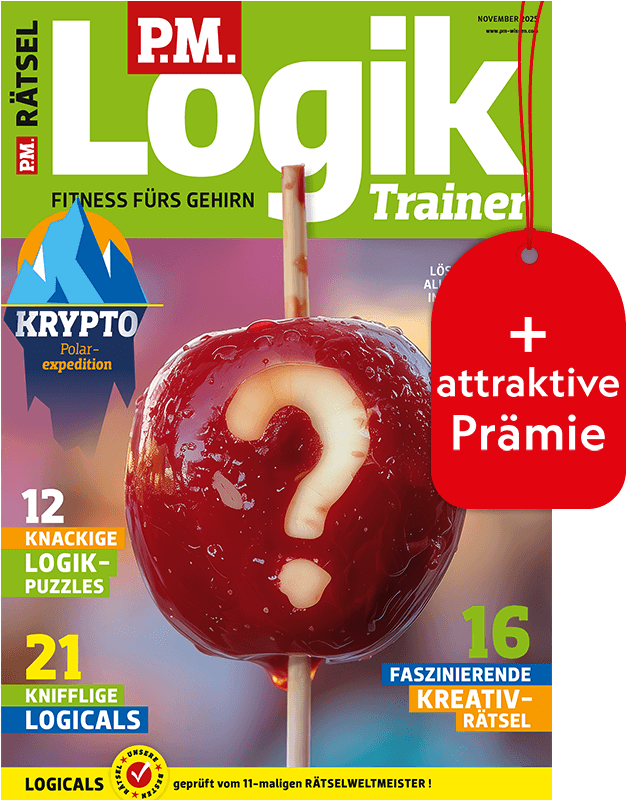 P.M. Logik Trainer – Ihr monatlicher Begleiter für abwechslungsreiche und anspruchsvolle Rätsel. Erleben Sie die bewährte P.M.-Rätselqualität in einem Magazin, das Ihre grauen Zellen herausfordert und Ihre logischen Fähigkeiten stärkt. Von Logikpuzzles über Kreativrätsel bis zu Logicals – alle klassischen P.M.-Rätsel vereint in einer Ausgabe.