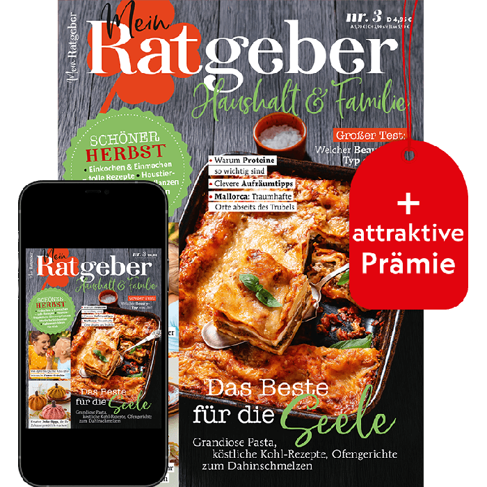 Willkommen bei „Mein Ratgeber Haushalt & Familie" – dem Magazin für alle, die sich gerne um Ihre Familie kümmern! Ob Kochen oder Heimwerken, Basteln oder Haushalts-Organisation - „Mein Ratgeber Haushalt & Familie" bietet Ihnen jede Menge Ideen und Anleitungen, wie Sie Ihr Leben mit Familie noch kreativer und entspannter gestalten